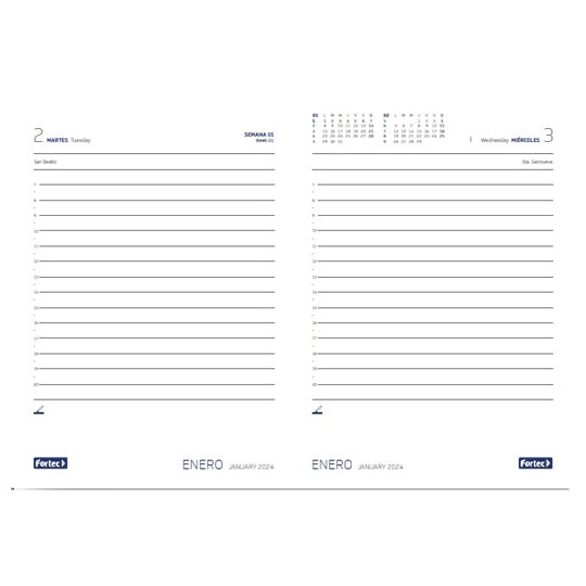 Agenda Diaria Fortec 2024 Forma Francesa, Gris - 1 Pieza